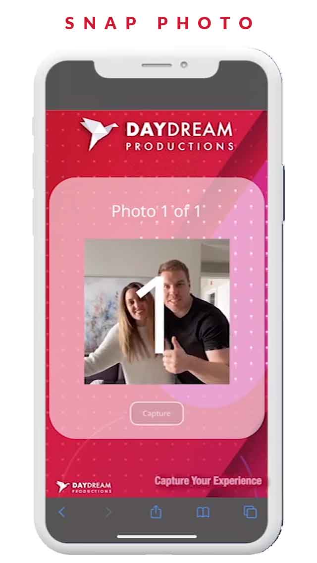 Guest can snap a Branded Still, GIF or Boomerang from their Smartphone, Computer, Laptop or Tablet.
